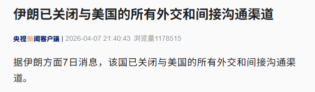 据央视新闻,据伊朗方面7日音尘,该国已关闭与好意思国的整个酬酢和转折疏通渠说念。
