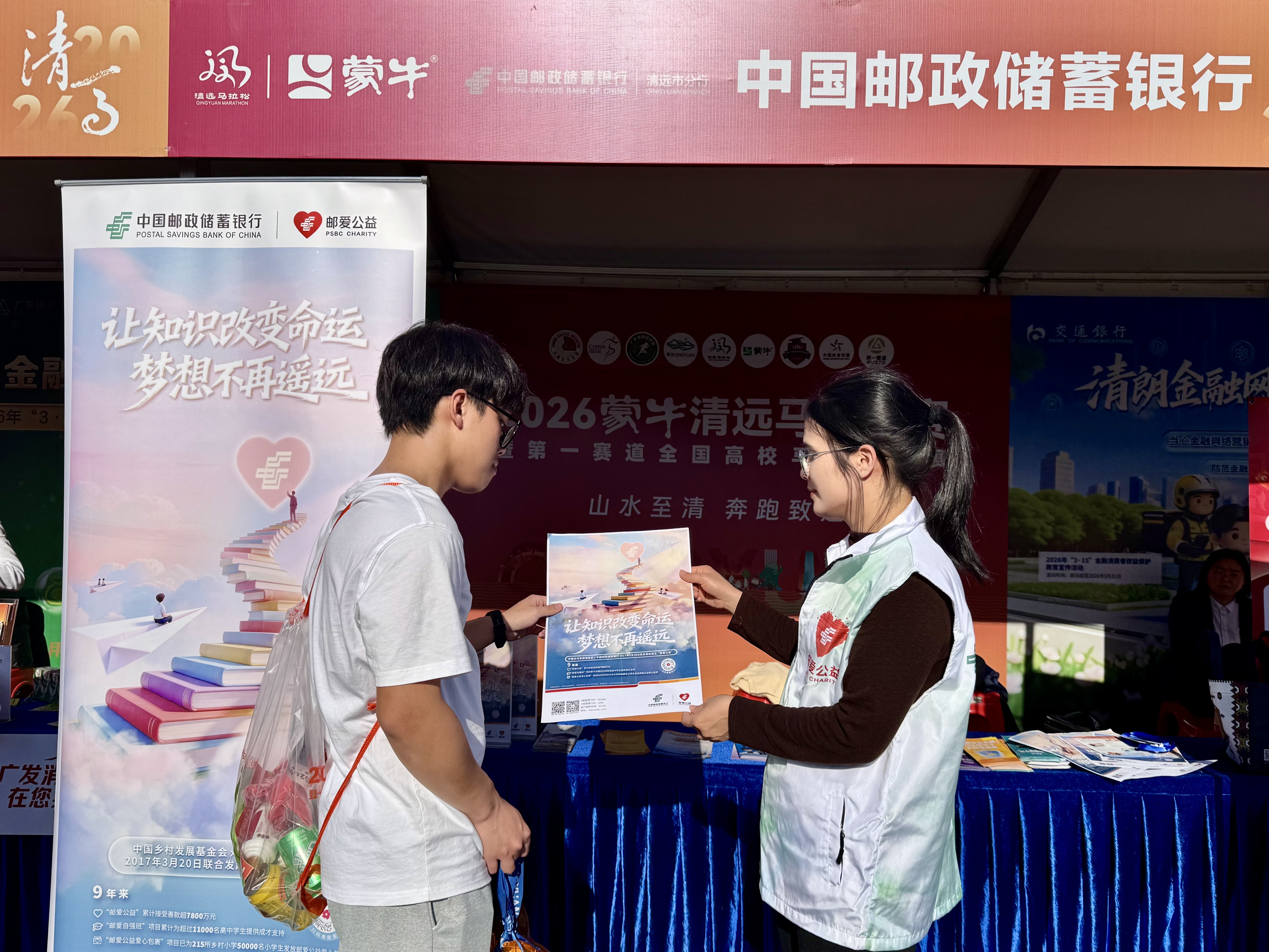 近日,2026清远马拉松情感开跑,在这场全城奔波的嘉会中,邮储银行清远市分行以“邮爱公益”发起第九年为机会,在赛事现场开采公益宣传展位,将金融温度与体育精神、乡村振兴紧密邻接。